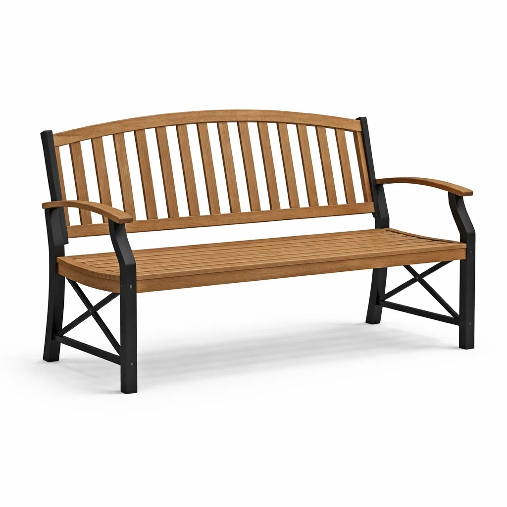 Banc en acacia et métal marron noir 125x60x85 cm